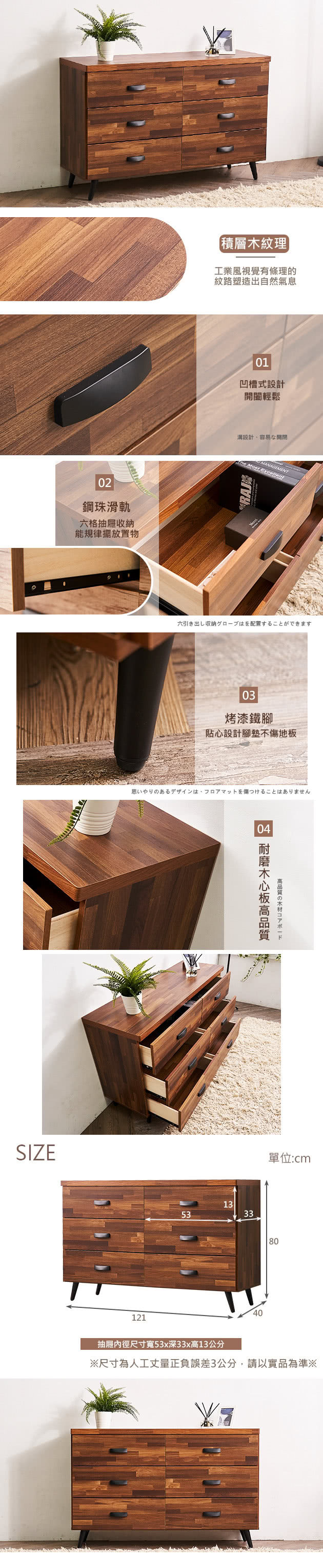 【時尚屋】[CW9]斯坦4尺六斗櫃,色系積層木色為主,點綴臥室視覺空間美感,材質上採用木心板、鋼珠滑軌、烤漆鐵腳等,均高於市場之產品規格,品質絕對有保證!此斗櫃在收納空間上採六抽,絕對可滿足您對收納的需求,設計質感及耐用性絕對是首選。有了他絕對可以讓您煥然一新!時尚屋帶給您對家具時尚新品味。 ◆採用符合標準材質讓你用的安心。 ◆此商品不需要DIY組立,此商品為組立後之成品。 ◆品質保證、專業設計、貼心服務。 ◆全由專人配送到家,專業安心服務,替你省下更多時間。