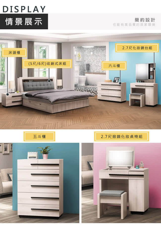 歐式設計簡約風格 木心板高品質抽屜採鋼珠滑軌 整體造型讓空間更加寬廣 |